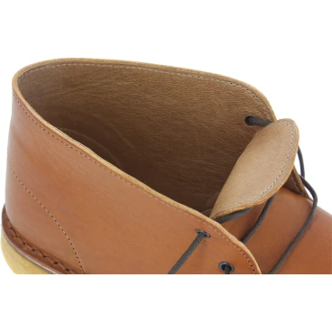 In Italien handgefertigte Stiefeletten aus einer einzigen Schicht pflanzlich gegerbtem, gefettetem, braunes Rindsleder mit Winterfutter machen den Schuh leicht, aber widerstandsfähig. Hypoallergen bei Hautkontakt.
