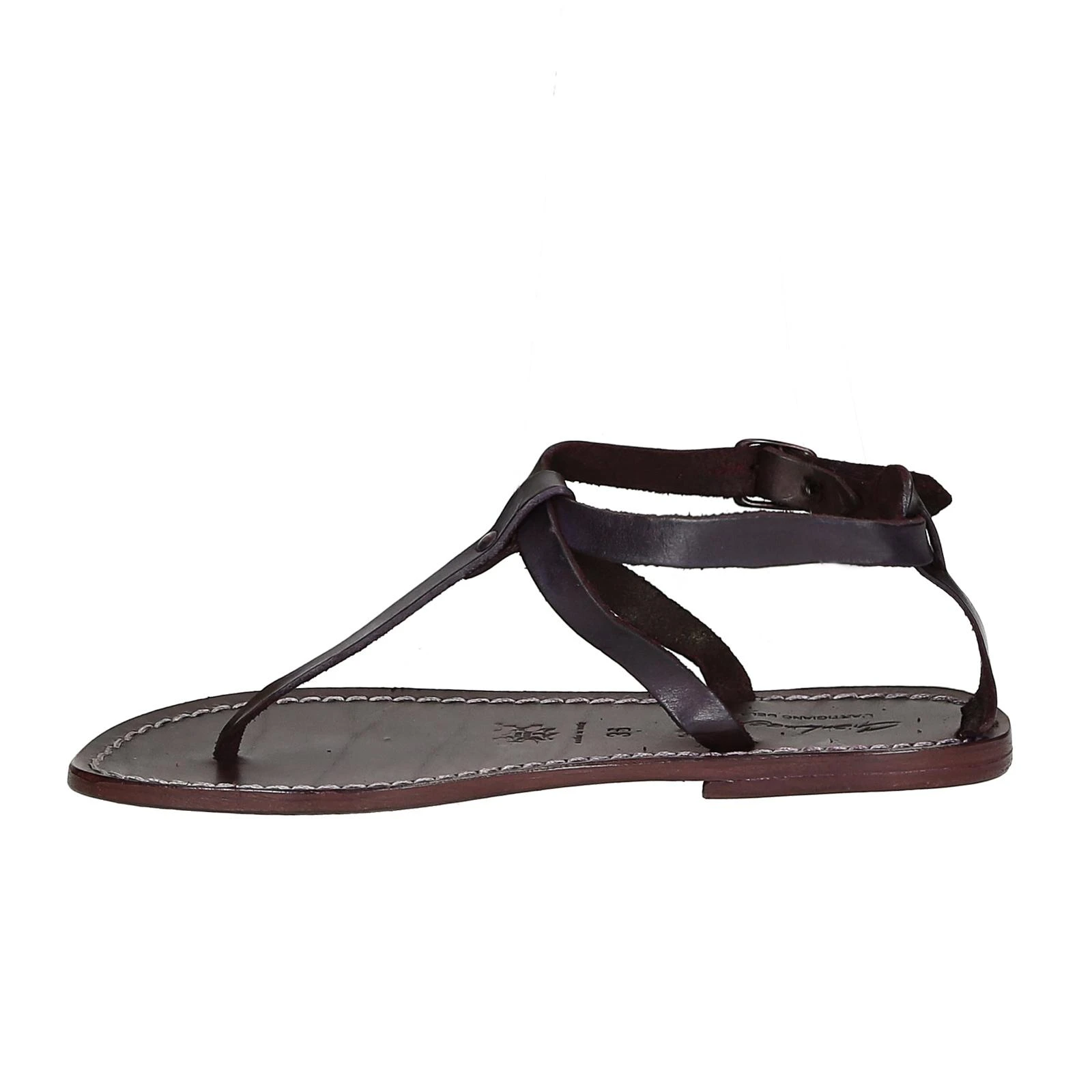 Damen-Sandalen aus dunkelbraunem Leder in Italien von Handgefertigt