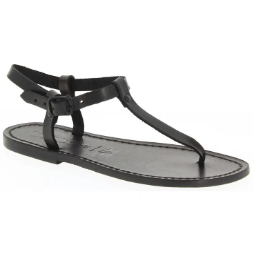 Flache Handgefertigte Damen-Sandalen mit Riemchen aus Schwarzen Leder