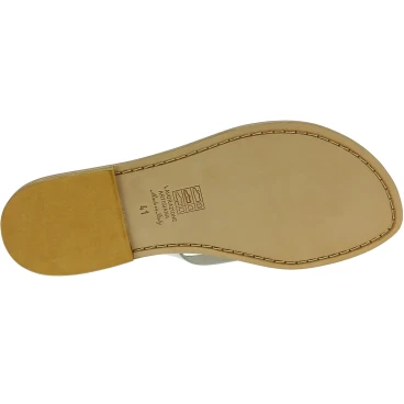 Genießen Sie puren Komfort und klassischen Stil mit unseren Zehentrenner aus weißem gefettetem Rindsleder, sorgfältig handgefertigt in Italien. Diese exquisiten pflanzlich gegerbten Hausschuhe verfügen über eine hochwertige Ledersohle und werden von erfahrenen Kunsthandwerkern gefertigt, die die besten Handwerkstraditionen bewahren und sicherstellen, dass die Produktion vollständig ohne ausländische oder Kinderarbeit erfolgt.
