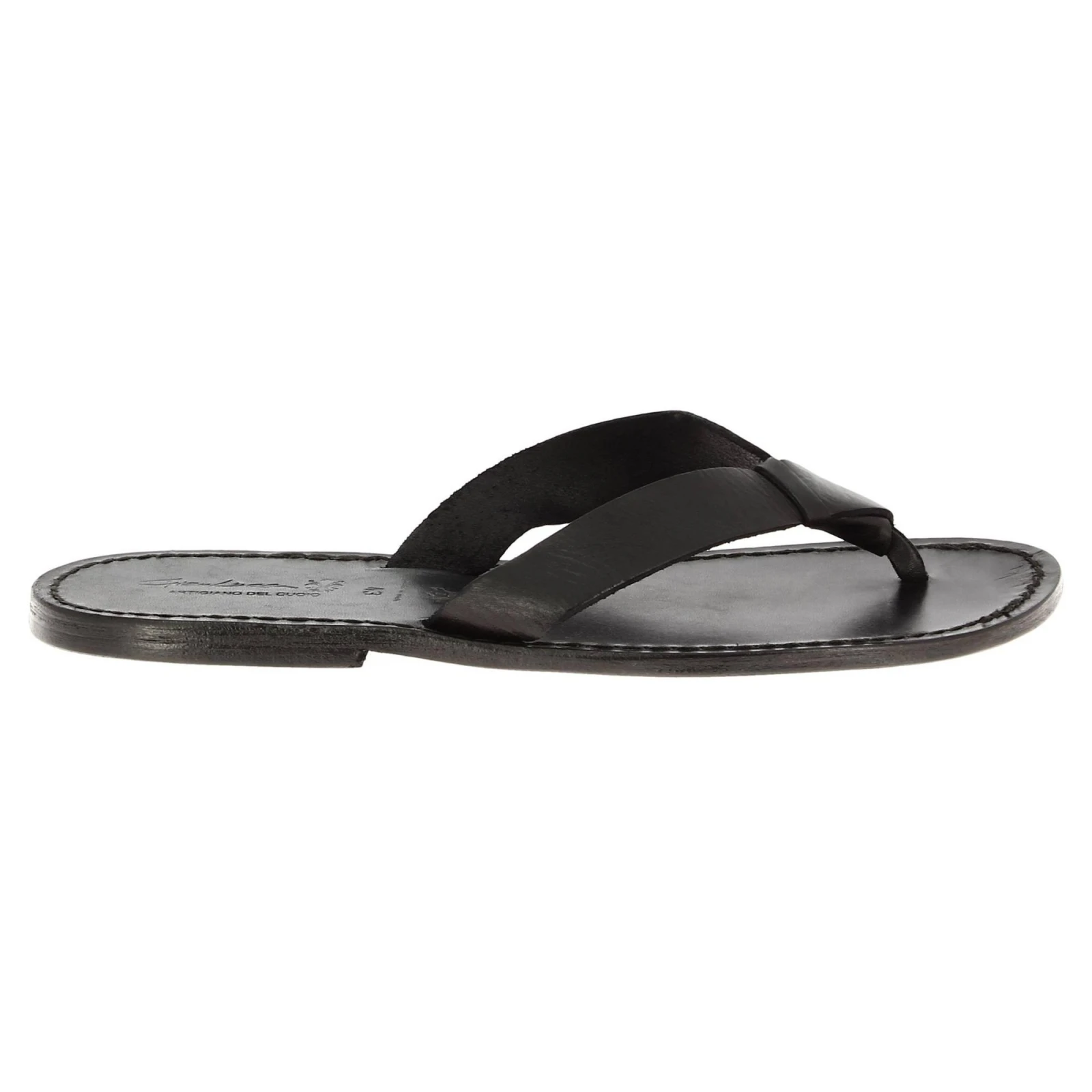 Schwarze Flip-Flop-Ledersandalen für Männer in Italien von Hand gefertigt