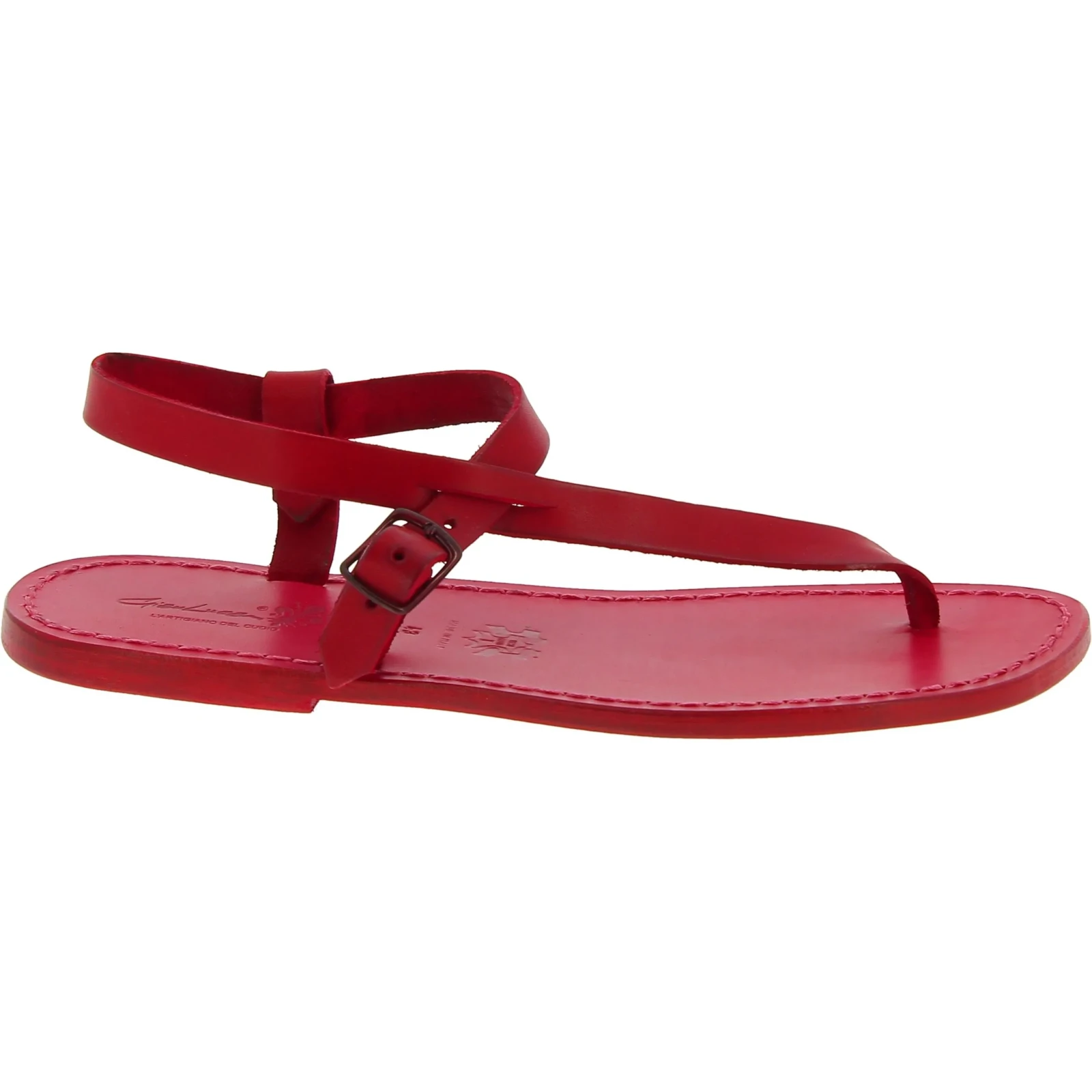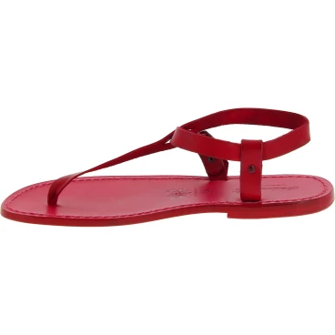 Rote Herren-Flip-Flops aus gefettetem Rindsleder mit Ledersohle, in Italien von Experten in der besten Tradition der Lederhandwerkskunst in Handarbeit ohne den Einsatz ausländischer oder Kinderarbeit gefertigt.