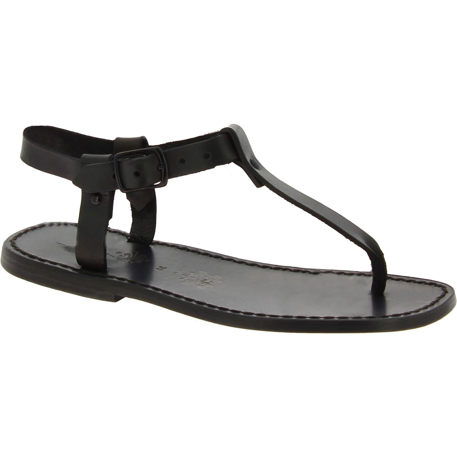 Herren Flip-Flop-Sandalen aus schwarze Leder in Italien von Handgefertigt