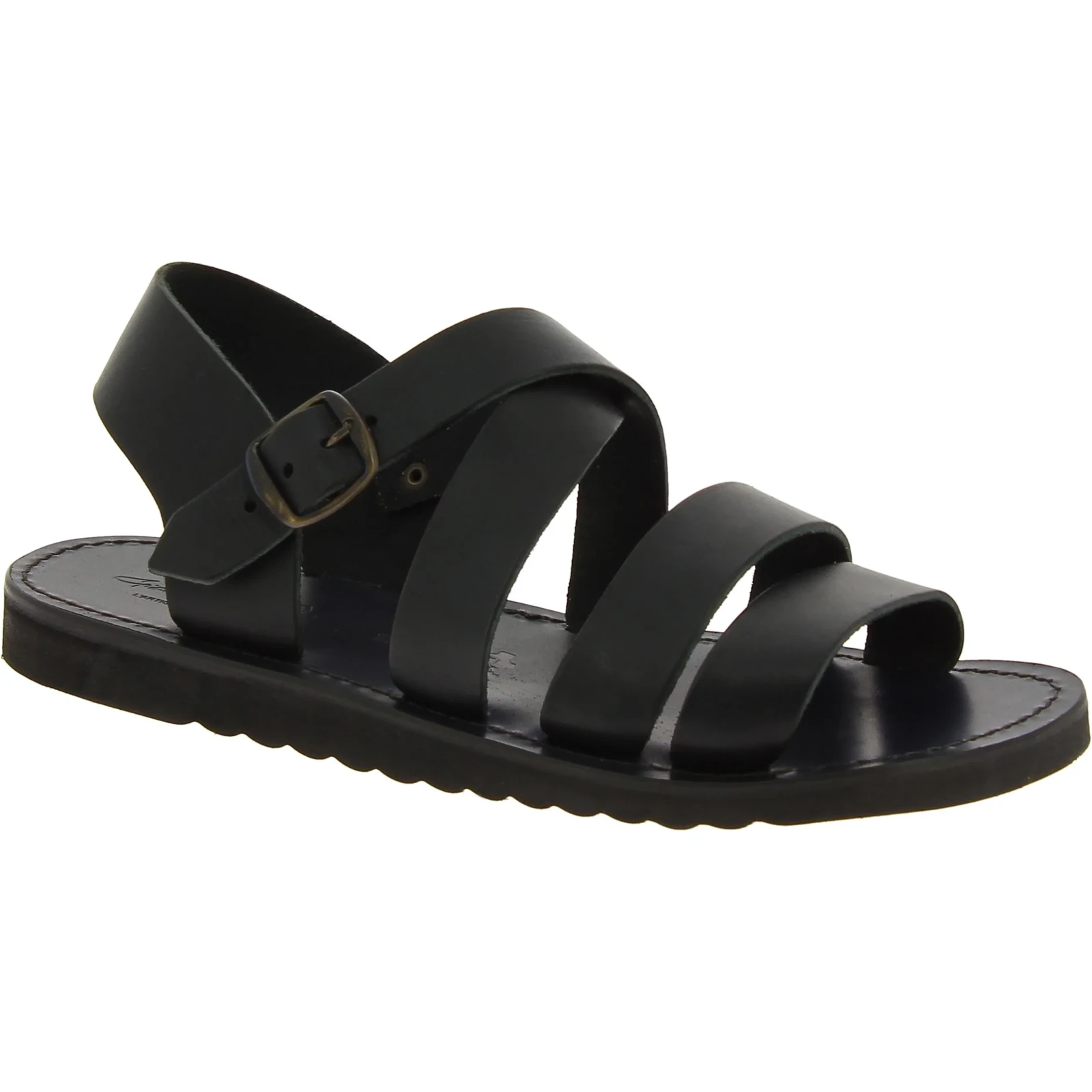 Schwarze Leder-Sandalen für Männer aus gefettetem Rindsleder mit Ledereinlegesohle und dicker Gummisohle, in Italien von Experten in der besten Tradition des Lederhandwerks in Handarbeit ohne den Einsatz ausländischer oder Kinderarbeit gefertigt