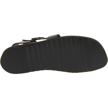 Schwarze Leder-Sandalen für Männer aus gefettetem Rindsleder mit Ledereinlegesohle und dicker Gummisohle, in Italien von Experten in der besten Tradition des Lederhandwerks in Handarbeit ohne den Einsatz ausländischer oder Kinderarbeit gefertigt.