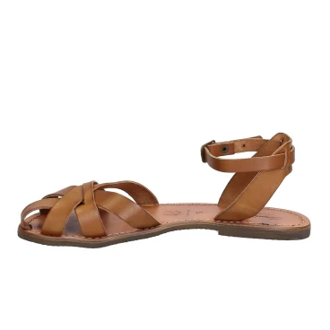 Lederfarbig Leder-Sandalen für Damen aus echtem gefettetem Rindsleder mit Gummisohle oder Ledersohle, in Italien von Experten in der besten Tradition des Lederhandwerks in Handarbeit ohne den Einsatz ausländischer oder Kinderarbeit gefertigt.