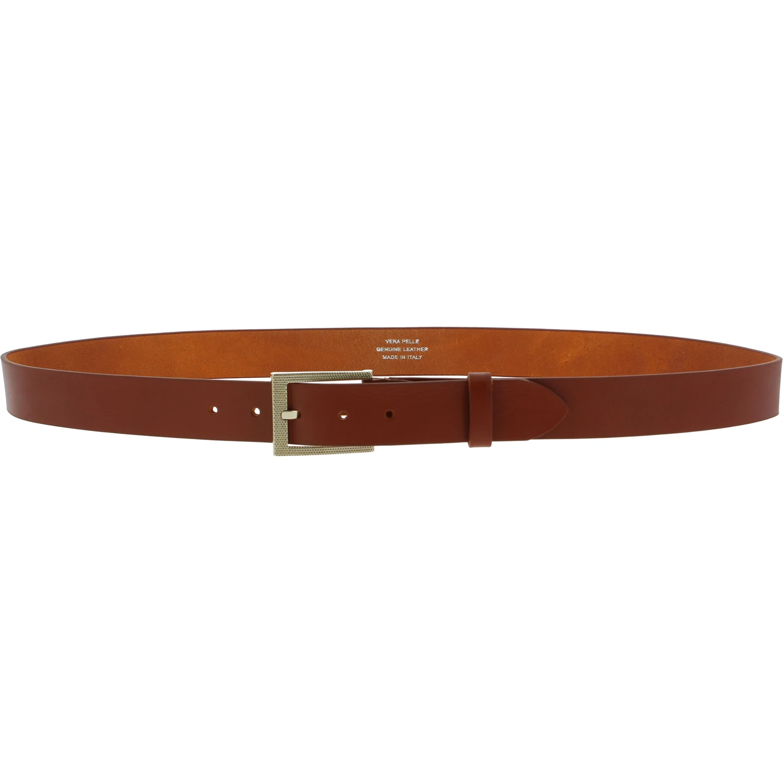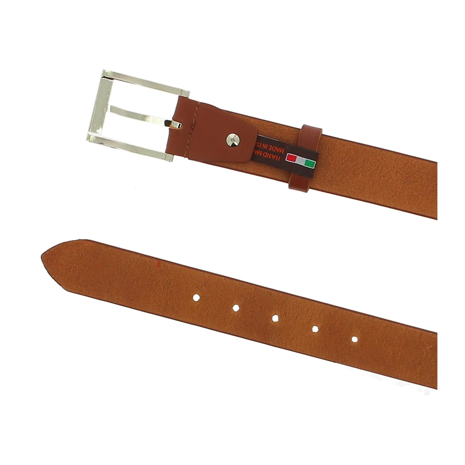 Pflanzlich gegerbter Bullenledergürtel und rechteckiger aufgestützt Metallschnalle (nickelfrei): einfach und elegant. Komplett handgefertigt in Italien mit italienischen Materialien und Accessoires.