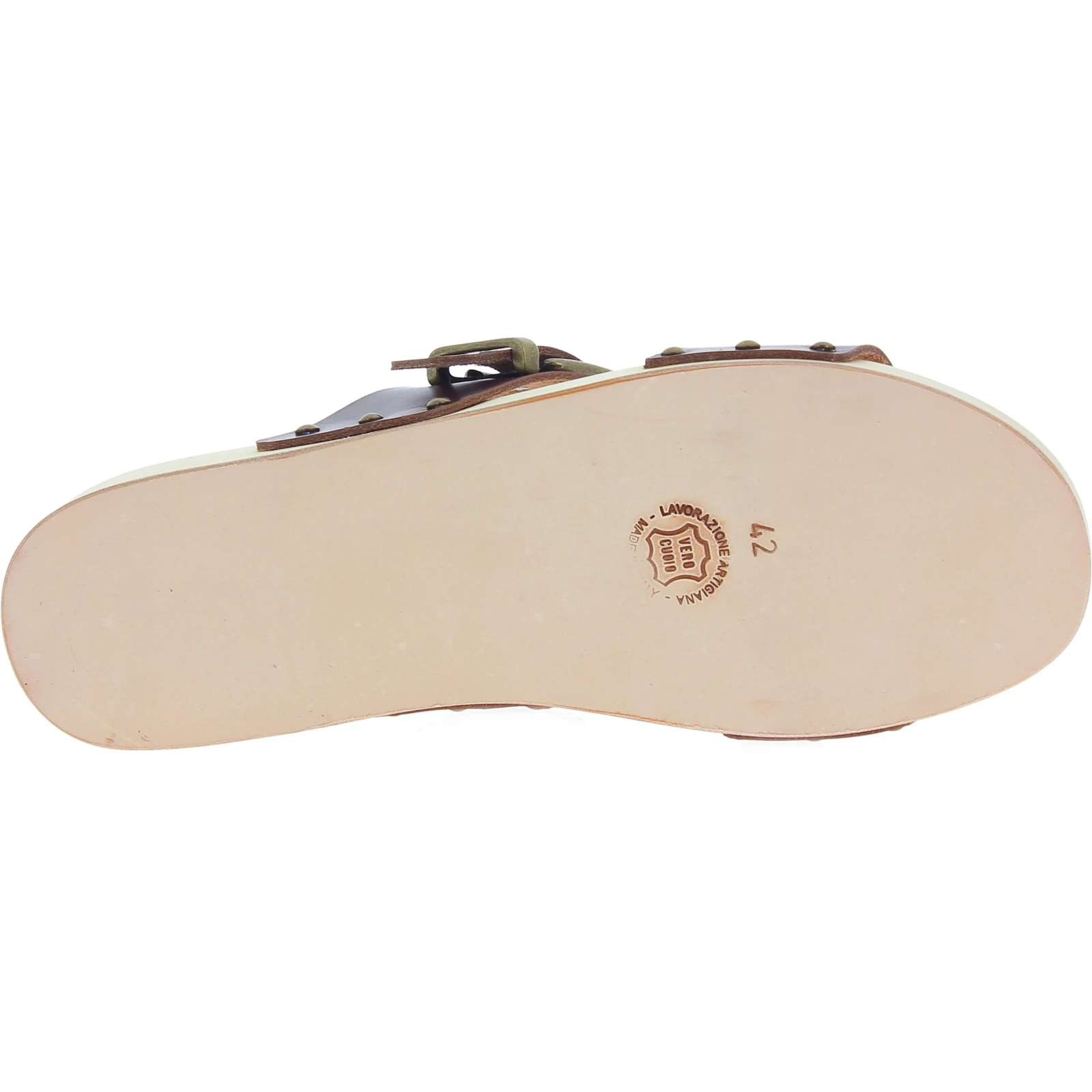 Hand gefertigte Damen-Slippersandalen aus dunkelbraunem Leder