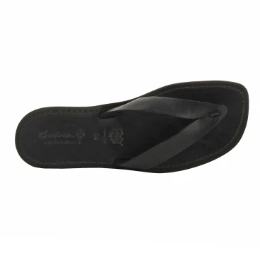Schwarze Flip-Flop-Ledersandalen für Männer in Italien von Hand gefertigt