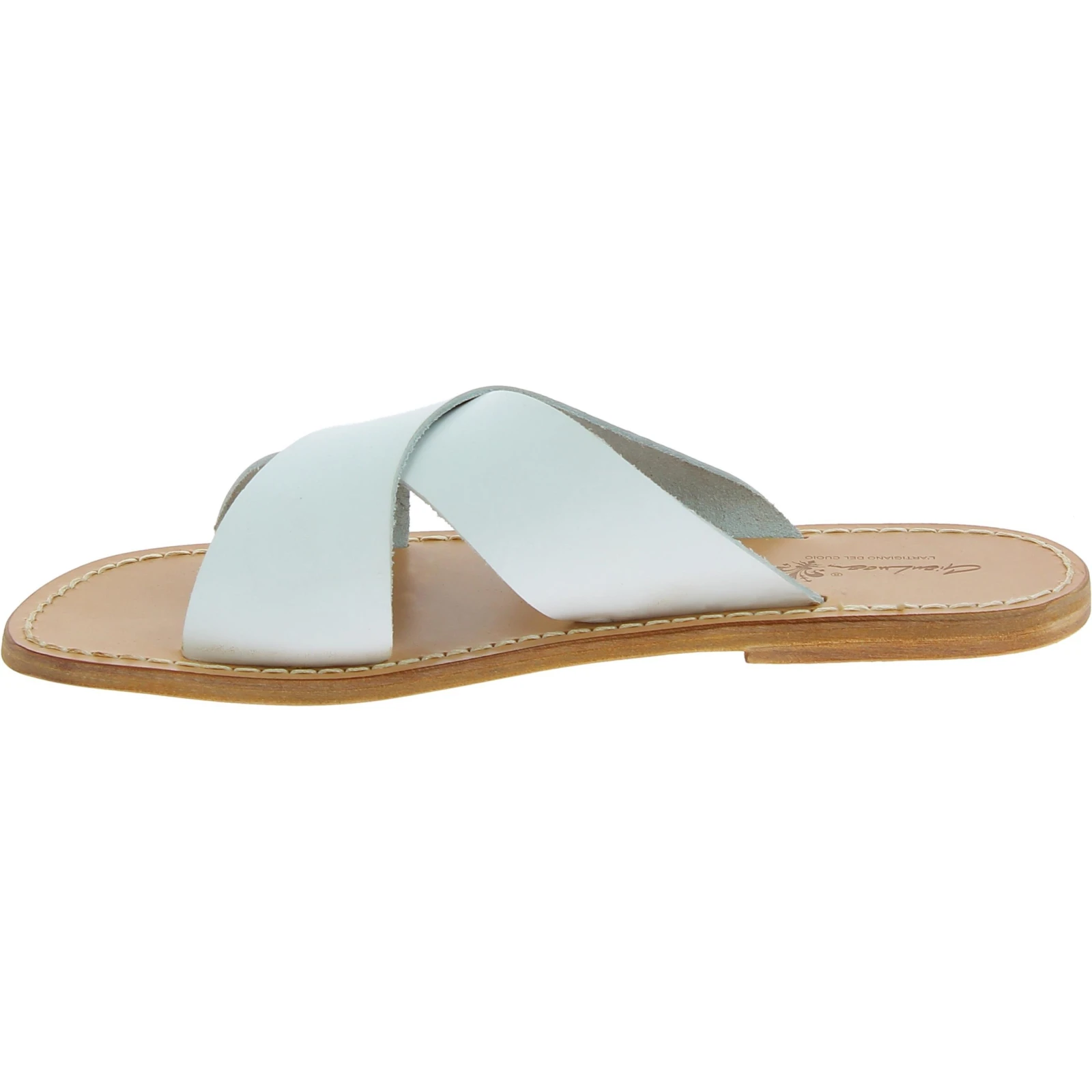 Weiße Lederslipper mit Knöchelriemen aus Rindsleder. In Italien, ohne ausländische oder Kinderarbeit gefertigt, sondern hergestellt von Experten in der besten Tradition des Leder-Handwerks.
