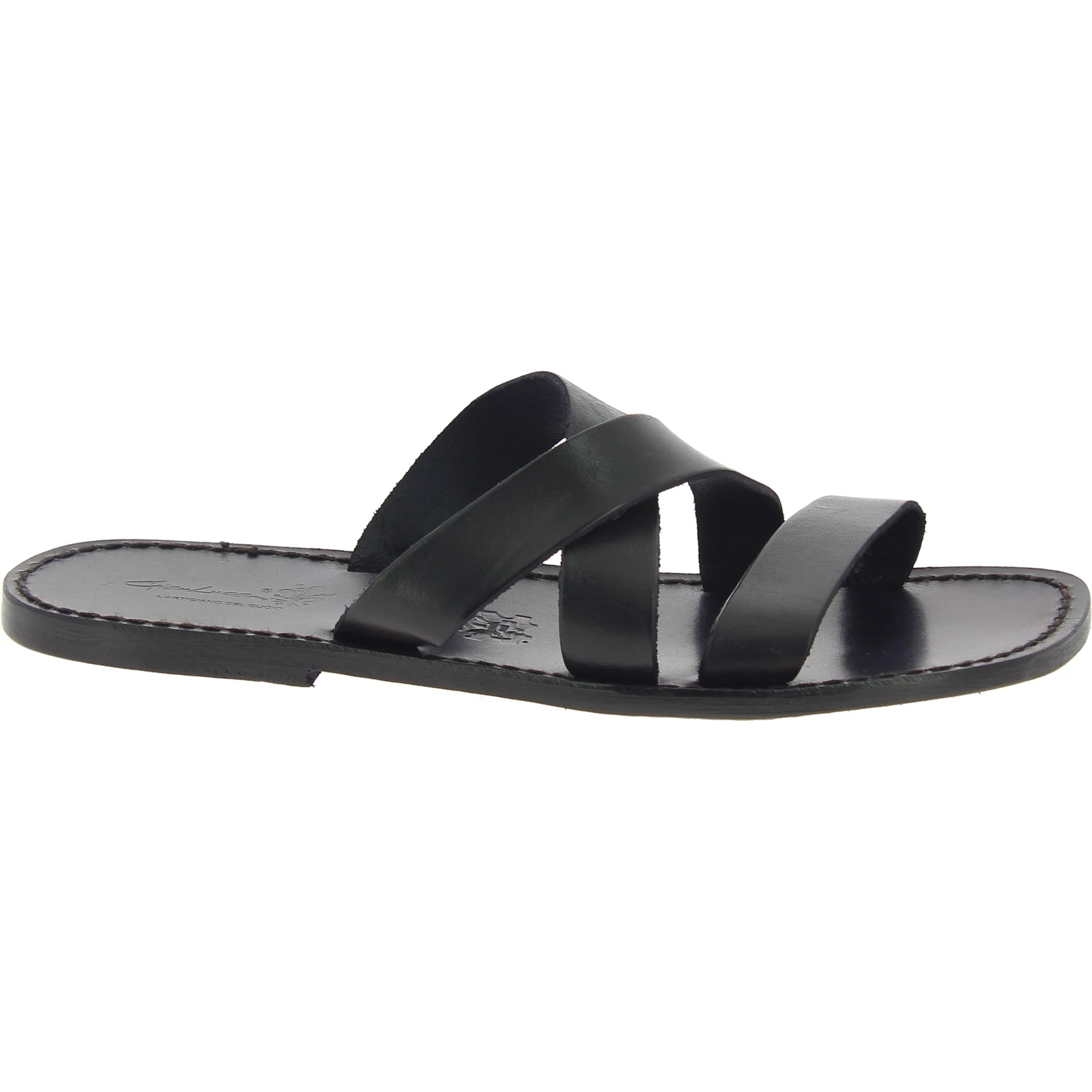 Schwarzem Leder Herren Pantoffeln Sandalen mit Leder- oder Gummisohle. Handgefertigt in Italien von Experten in der besten Tradition des Lederhandwerks ohne den Einsatz ausländischer oder Kinderarbeit.
