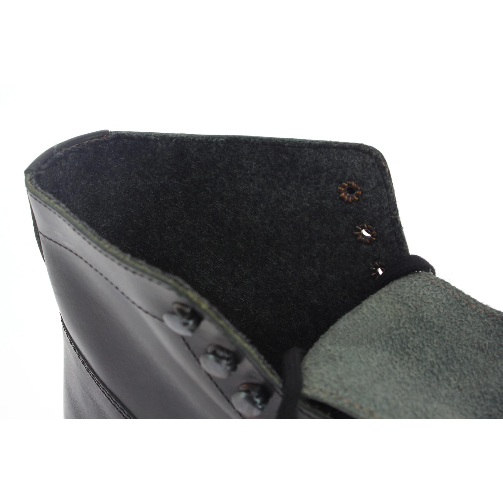 In Italien handgefertigte Herren stiefeletten aus einer einzigen Schicht schwarz gefetteten Rindsledergemüses, das in italienischen Gerbereien ohne Verwendung von Chemikalien wie Chrom und Nickel gegerbt wurde. Winterfutter.