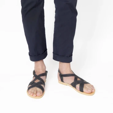 The Achilles sandal by Attica is a versatile thong sandal. For this model we selected black nubuck, the softest and most prestigious leather on the market, to make it not only comfortable and close to the foot but also suitable for all outfits, elegant or more casual.