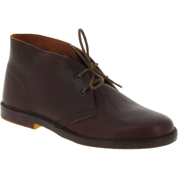 Men's ankle boots handmade in Italy using a single layer of vegetable tanned greased dark brown cowhide leather in Italian tanneries without the use of chemicals such as chromium and nickel.