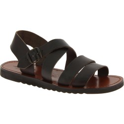 Handmade in Italy mens dark brown leather Franciscan sandals