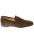 Penny loafers in dark brown soft suede leather with "pinch" stitching on the upper. Stitched leather sole with non-slip rubber oval. Calf lining. Made in Tuscany.