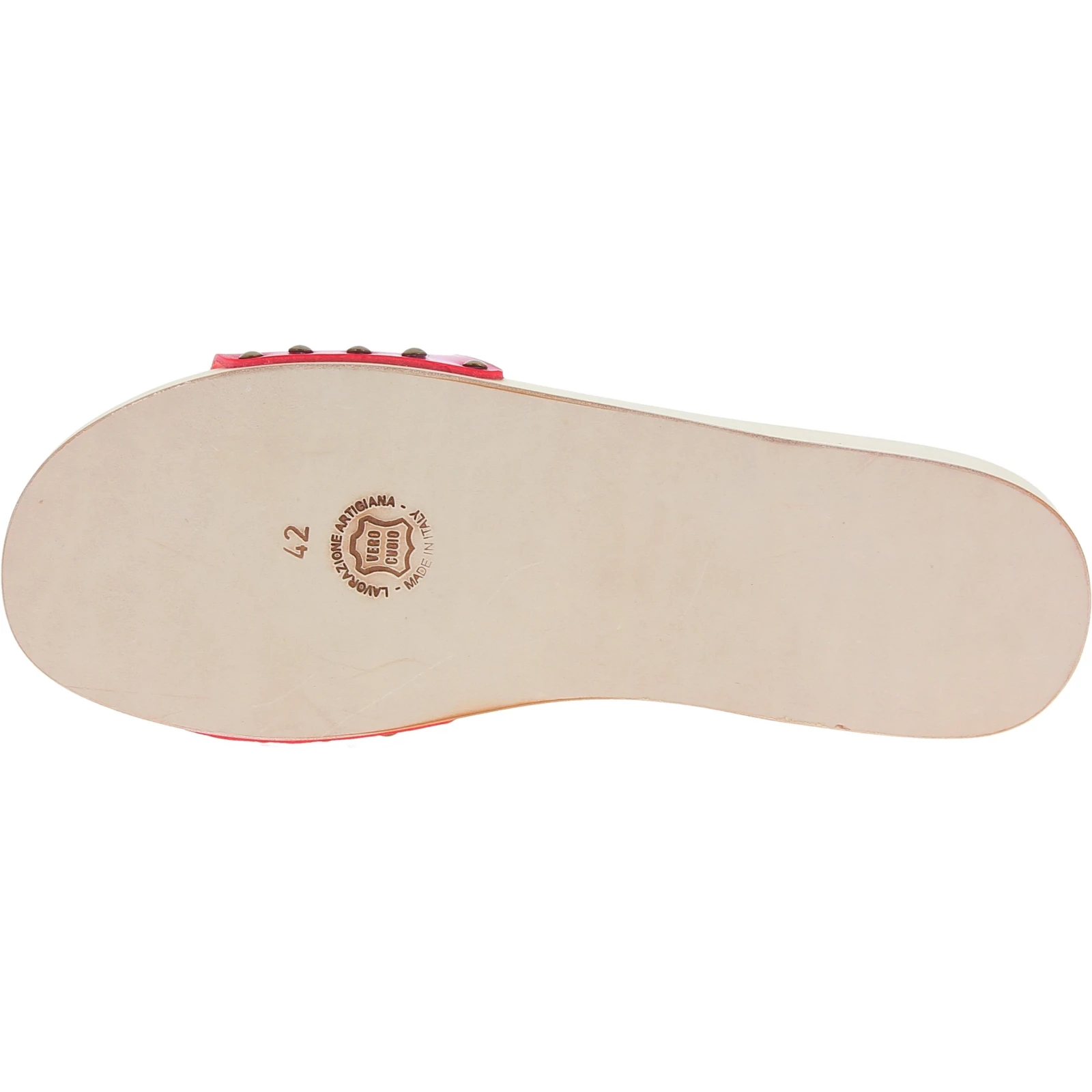All these precious materials, as you have surely noticed the rounded burnished rivets and the leather tread (unavailable on the market), are put together by hand, with unparalleled skill, by Tuscan artisans with decades of experience in the realization of this timeless classic: the italian clog slippers!