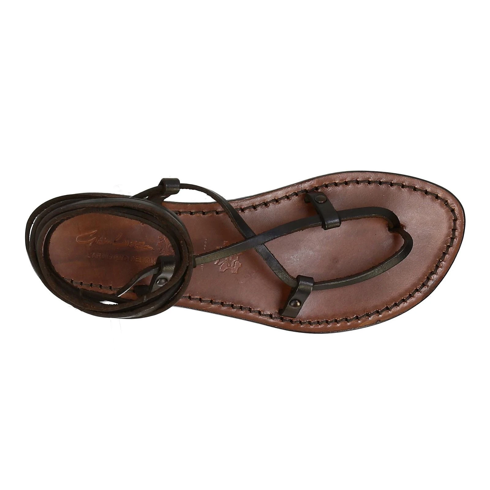 Womens strappy leather sandals Handmade in Italy in dark brown cuir