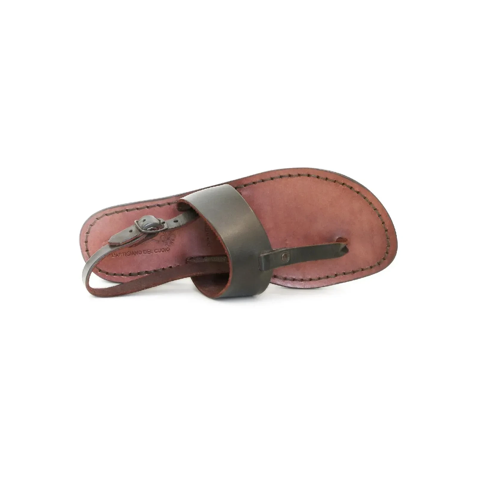 Dark brown greased vachetta leather thong sandals for women with leather or rubber sole handmade in Italy by experts in the best tradition of craftsmanship.