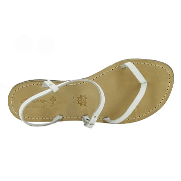 Handmade white flat thong sandals for women in real greased vachetta leather with leather or rubber sole made by experts in Italy in the best tradition of craftsmanship.
