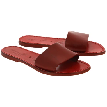 Step into effortless style with our women's red greased cow leather slide sandals, featuring a premium leather sole. Each pair is meticulously handmade in Italy by skilled artisans who uphold the finest traditions of craftsmanship, ensuring production is entirely free from foreign or child labor.