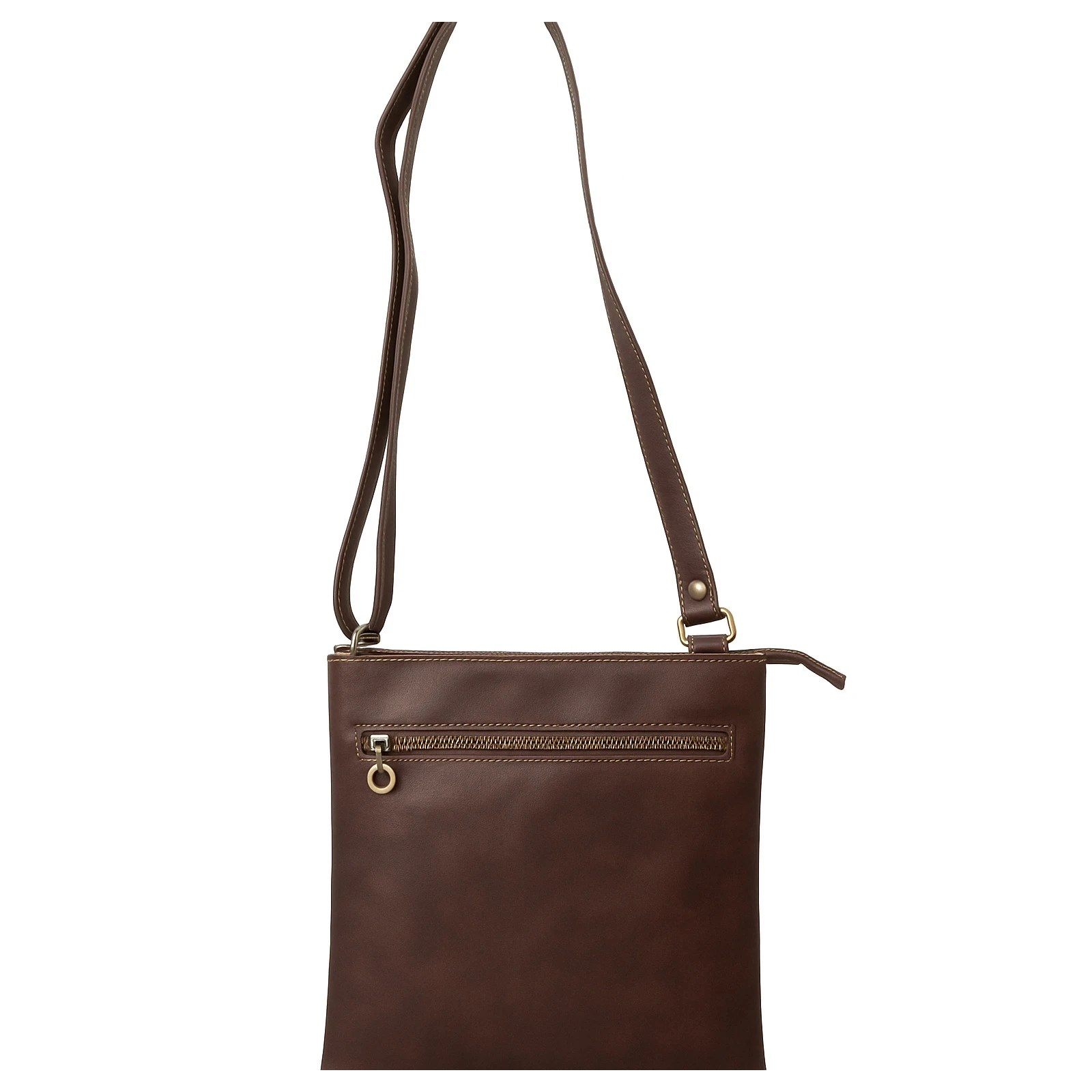 Bandolera en piel de curtido vegetal color marrón oscuro hecho a mano en Toscana por artesanos locales.