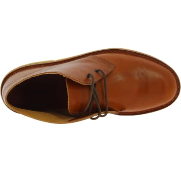 Botines hechos a mano en Italia con una sola capa de piel de vacuno marrón engrasada curtida vegetalmente que hacen que el zapato sea ligero pero resistente. Hipoalergénico en contacto con la piel.
