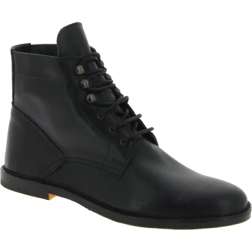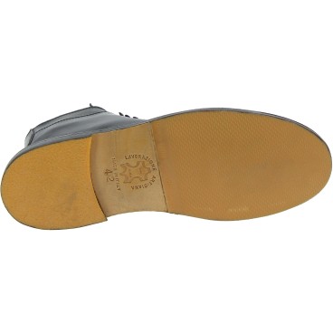 Botines hombre hechos a mano en Italia con una sola capa de piel de vacuno negra engrasada curtida vegetalmente que hacen que el zapato sea ligero pero resistente. Hipoalergénico en contacto con la piel.