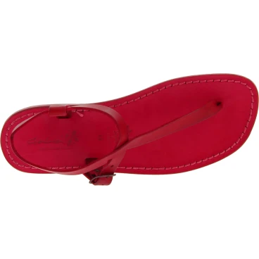 Sandalias de hombre en piel de vacuno vegetal engrasada roja con suela de cuero hecha a mano en Italia sin la ayuda de mano de obra extranjera, y mucho menos un niño, pero con manos expertas como en la mejor tradición artesanal.
