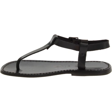 Sandalias de dedo para hombre en piel de vacuno vegetal engrasada negro con suela de cuero hecha a mano en Italia sin ayuda de mano de obra extranjera ni de menores, pero por manos expertas como en la mejor tradición artesanal.