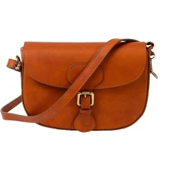 Bandolera en piel marron de curtición vegetal 100% artesanal