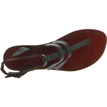 Sandalias de las mujeres en marrón oscuro cuero hecho a mano en Italia