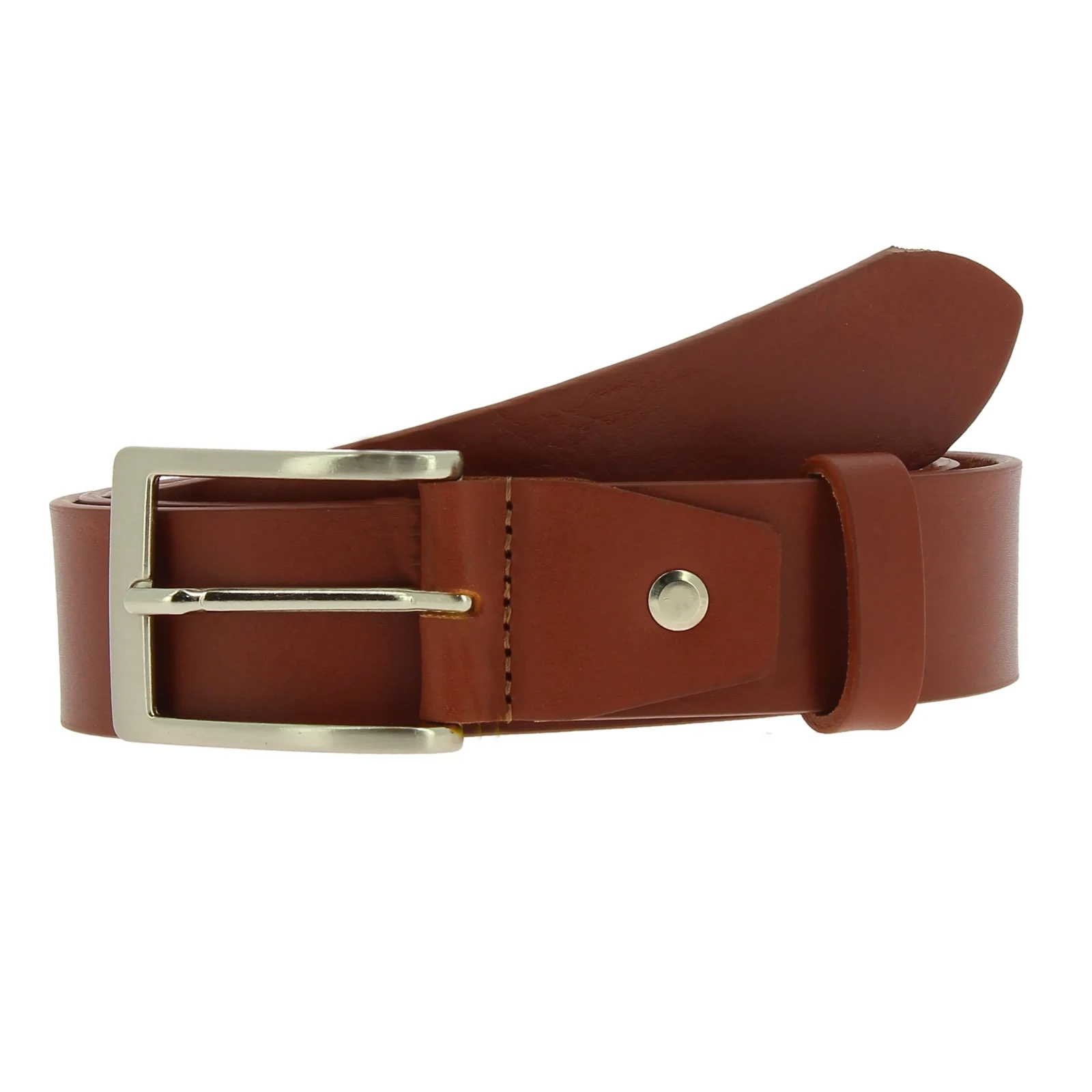 Cinturón de piel brandy con hebilla rectangular de metal clásica