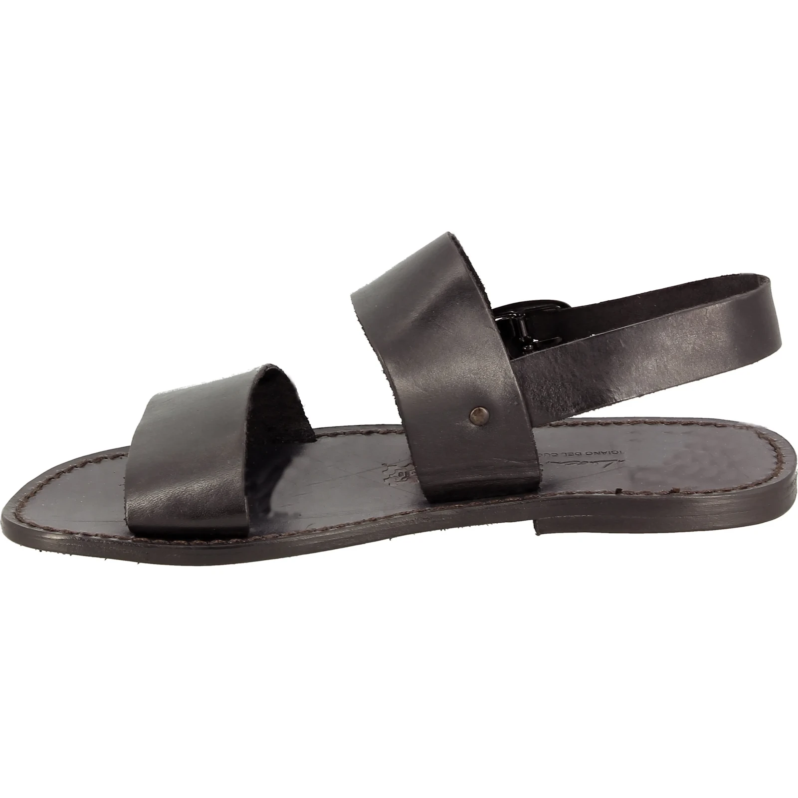 Sandalias hechas a mano mens en cuero marrón oscuro hecho en Italia