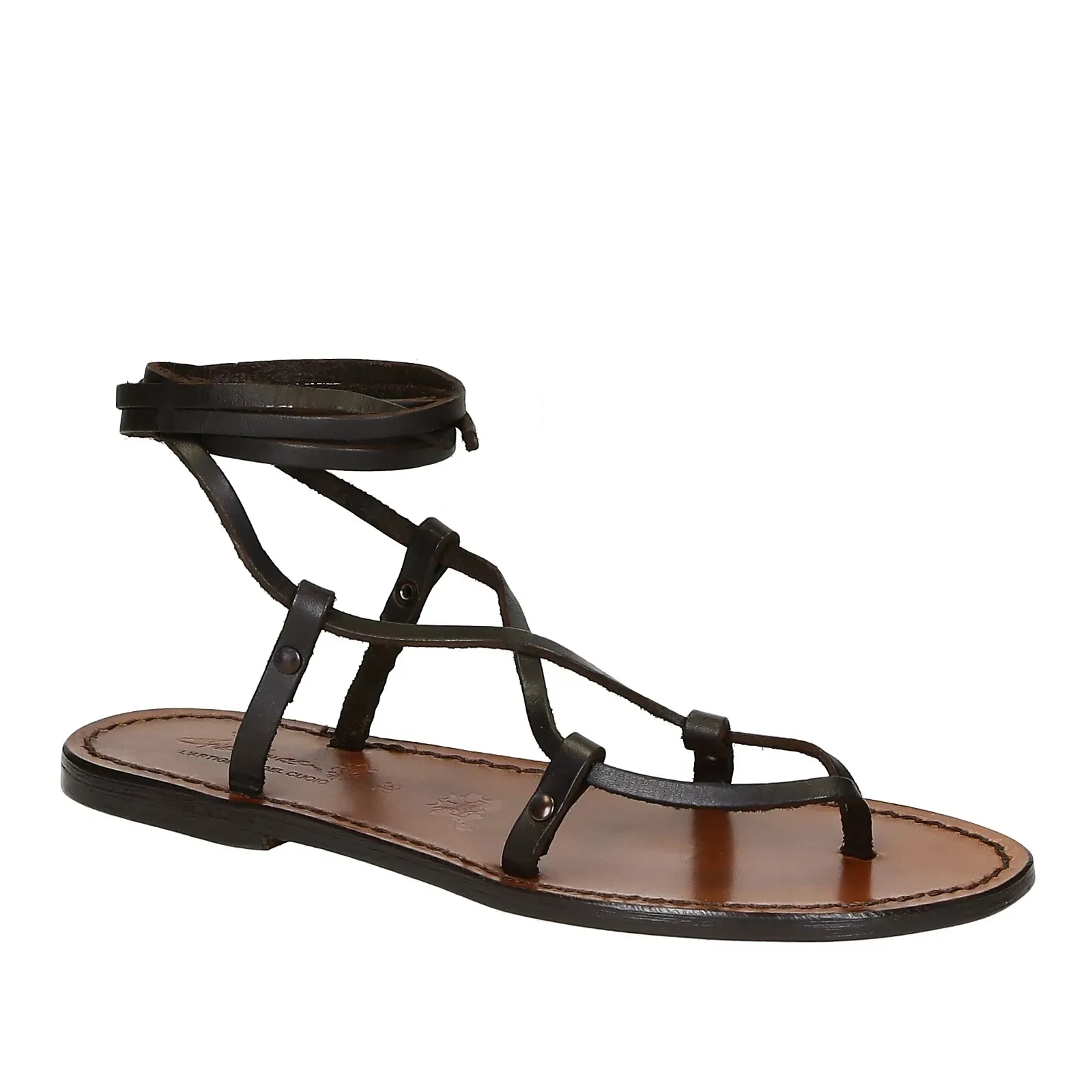 Sandalias de gladiador de tiras hechas a mano en cuero marrón ternero