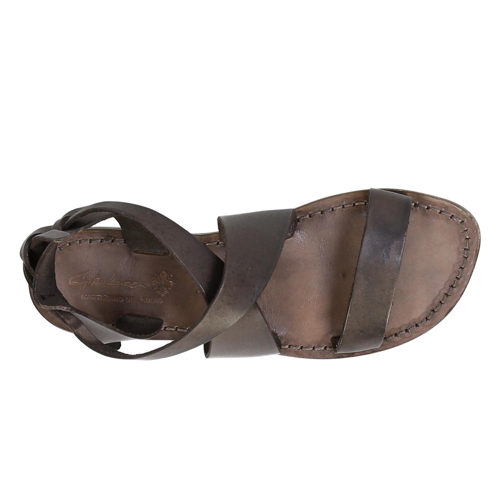 Señoras sandalias hechas a mano en marrón oscuro cuero Made in Italy