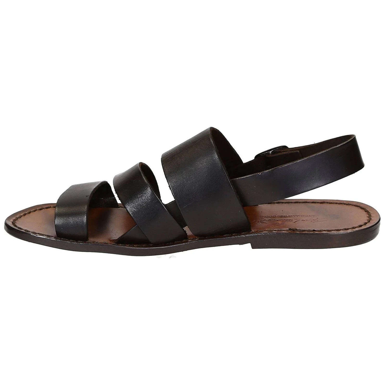 Sandalias hechas a mano mens en cuero marrón oscuro hecho en Italia