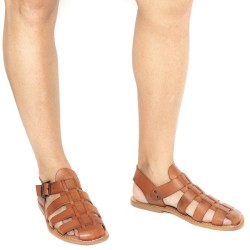 Sandalias frailes para hombre en cuero marrón hechas a mano