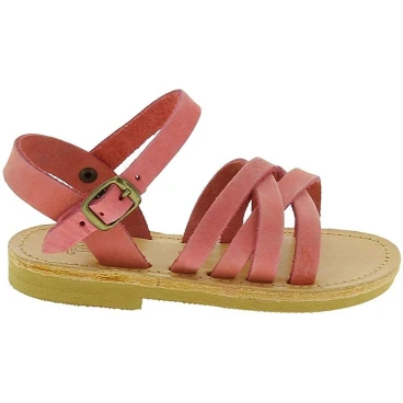 La sandalia Hebe es una sandalia para niña que presenta cordones cruzados en el empeine y una tira ajustable al tobillo. La sandalia está fabricada en suave piel nobuck rosa claro, pegada a la piel del pie y flexible. La suela interior es de piel de becerro natural muy tolerada por el pie. La suela de 6 mm está hecha de goma elástica especial resistente al agua que absorbe los golpes y tiene propiedades antideslizantes. El modelo está disponible del 23 al 32.