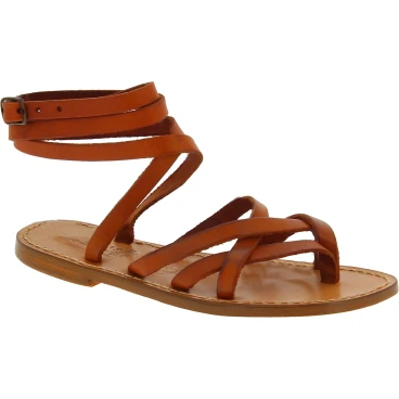 Sandalia romana para mujer en cuero marrón hechas a mano