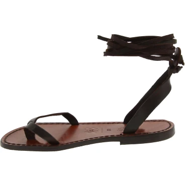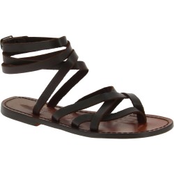 Sandalias en tiras de cuero marron oscuro para mujer hechas a mano en Italia