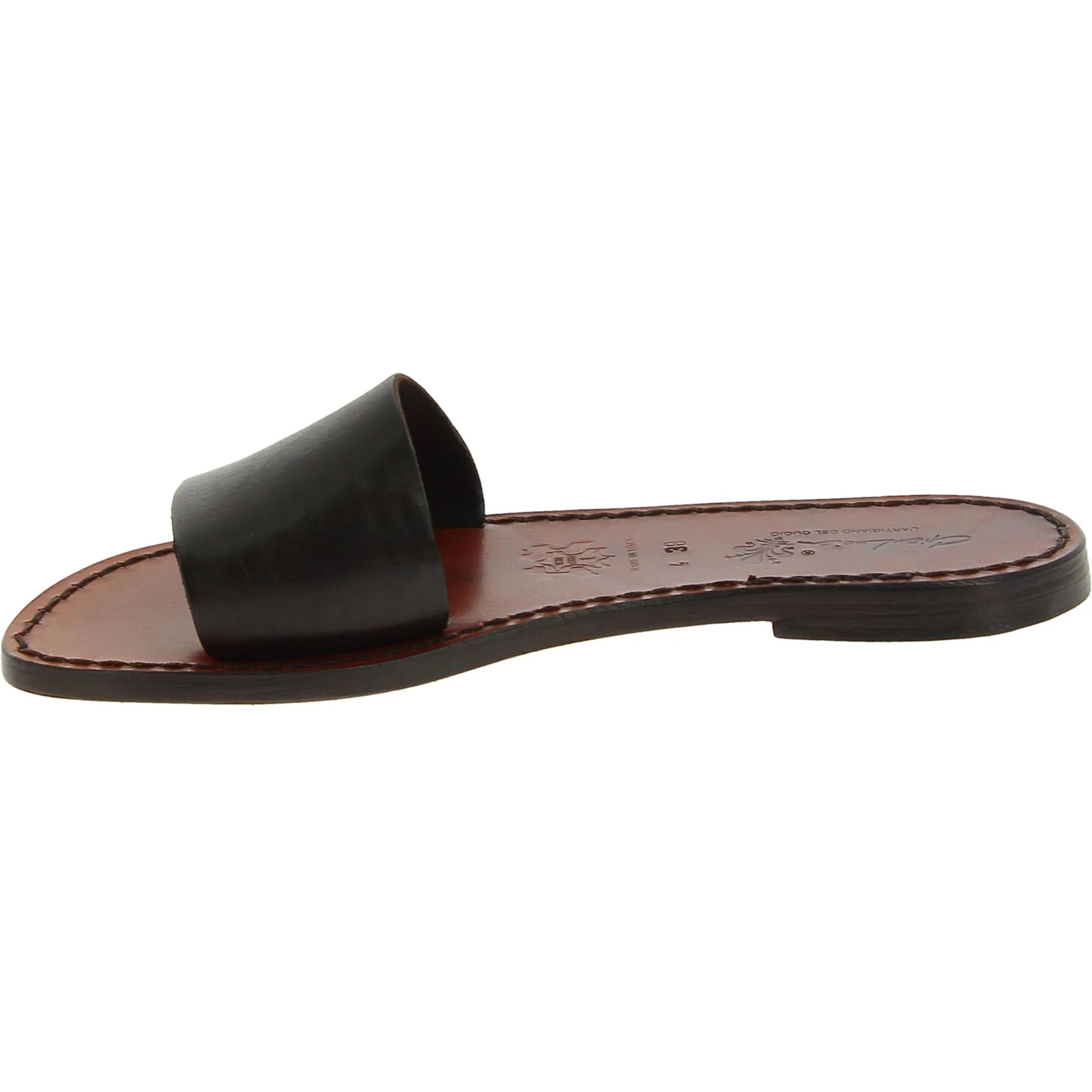 Zapatillas romanas de cuero negro para mujer hecho a mano
