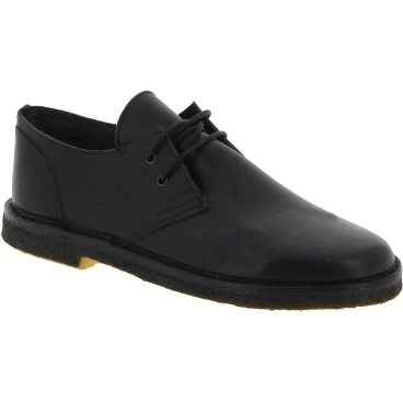 Zapatos bajos hechos a mano en Italia con una sola capa de piel de vacuno negra engrasada curtida vegetalmente que hacen que el zapato sea ligero pero resistente. Hipoalergénico en contacto con la piel.
