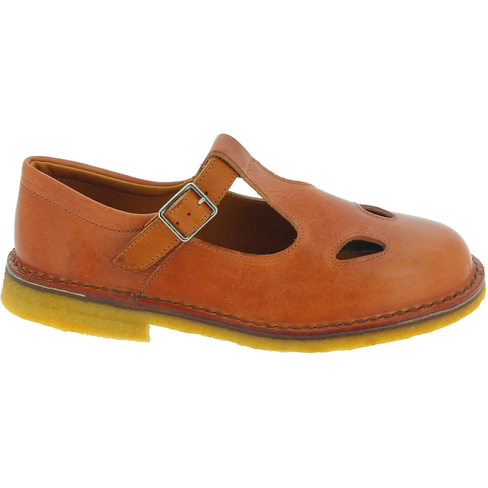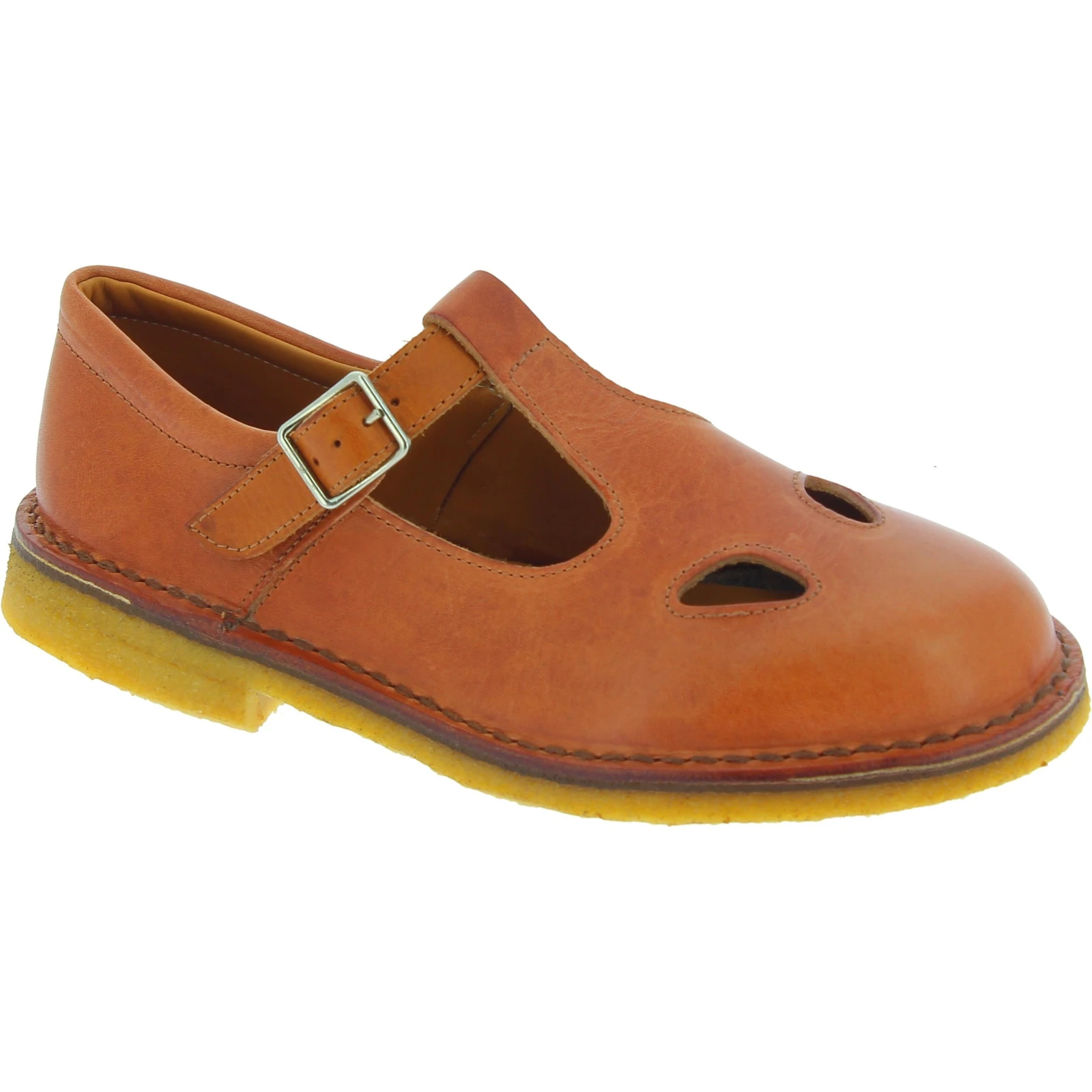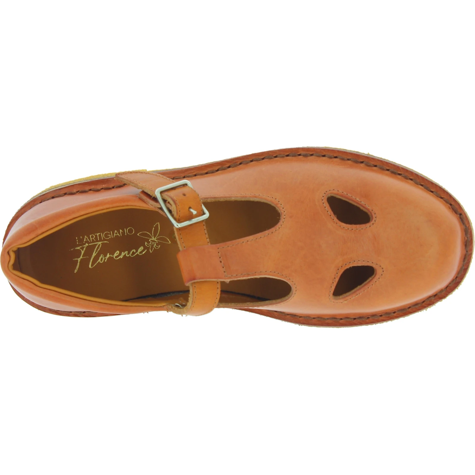 T-bar zapatos para hombre hechos a mano en Italia con una piel de vacuno marrón engrasada curtida vegetalmente que hacen que el zapato sea ligero pero resistente. Hipoalergénico en contacto con la piel.