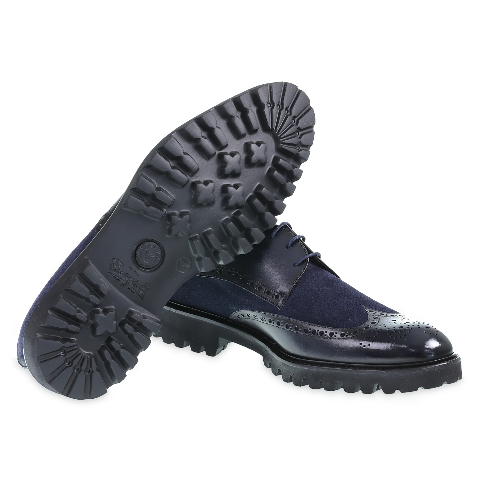 Un toque de estilo campestre con encanto metropolitano: descubre el Blu Night Derby con agujeros de Fratelli Borgioli, una combinación perfecta de comodidad y artesanía italiana.