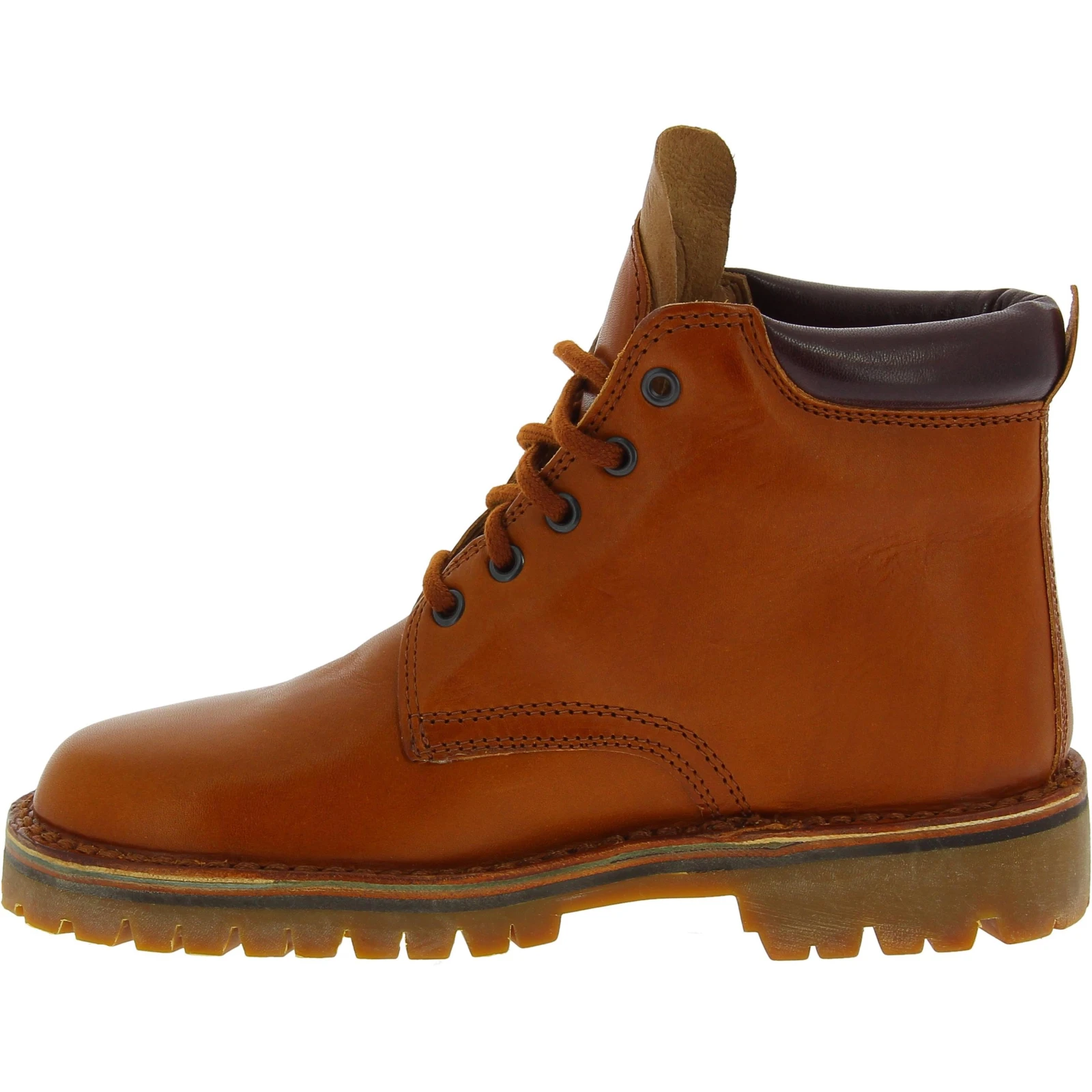 Botín de mujer hecho a mano íntegramente a mano con pieles de curtido vegetal plena flor en Italia. El color es marrón (cuero) con cordones a juego y cuello acolchado en marrón oscuro.