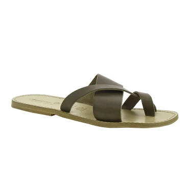 Tongs femme en cuir couleur de boue travaillés à la main en Italie