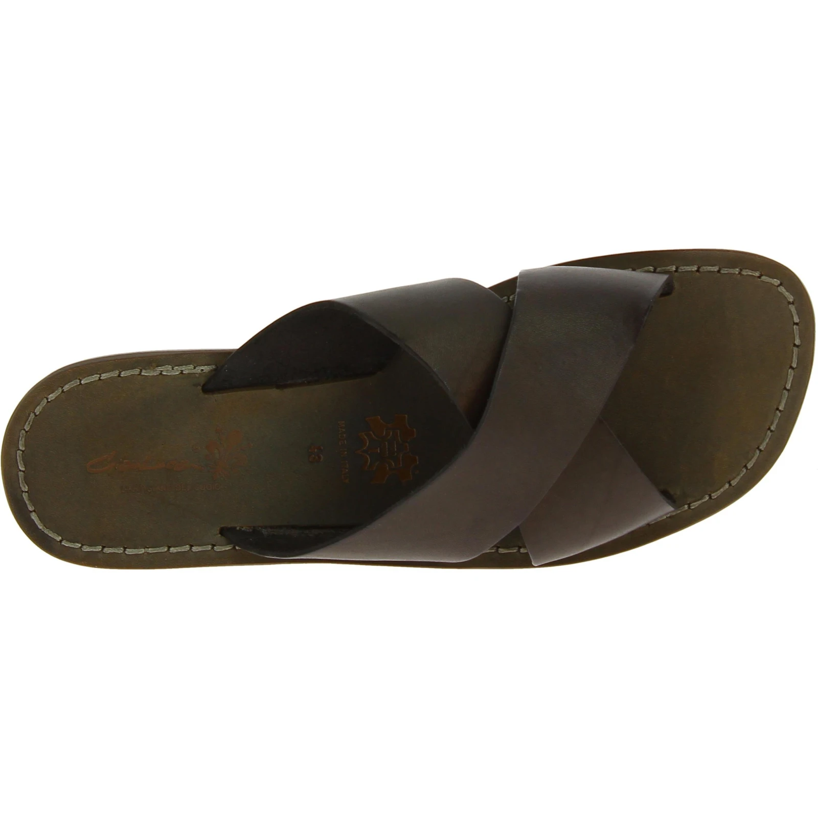 Nu-pieds pour homme en cuir marron foncé travaillé à la main