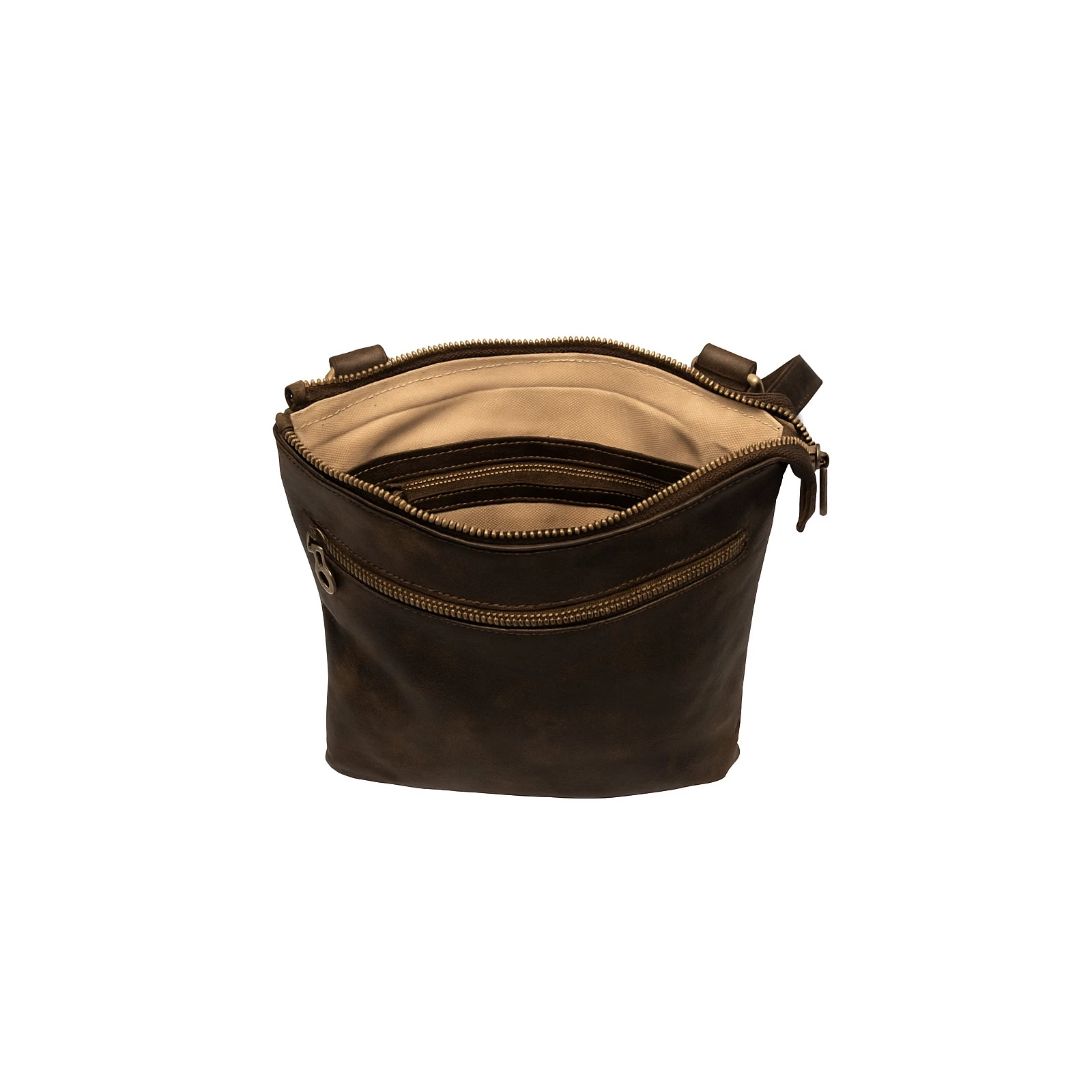 Sac besace en cuir de vachette tanné au végétal dans la teinte marron foncé, realisé à la main en Toscane par des artisans locaux.