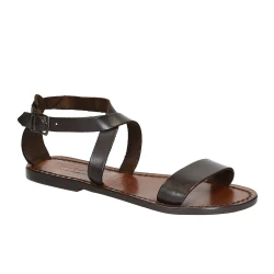 Sandales cuir femme artisanales fait en Italie en cuir marron